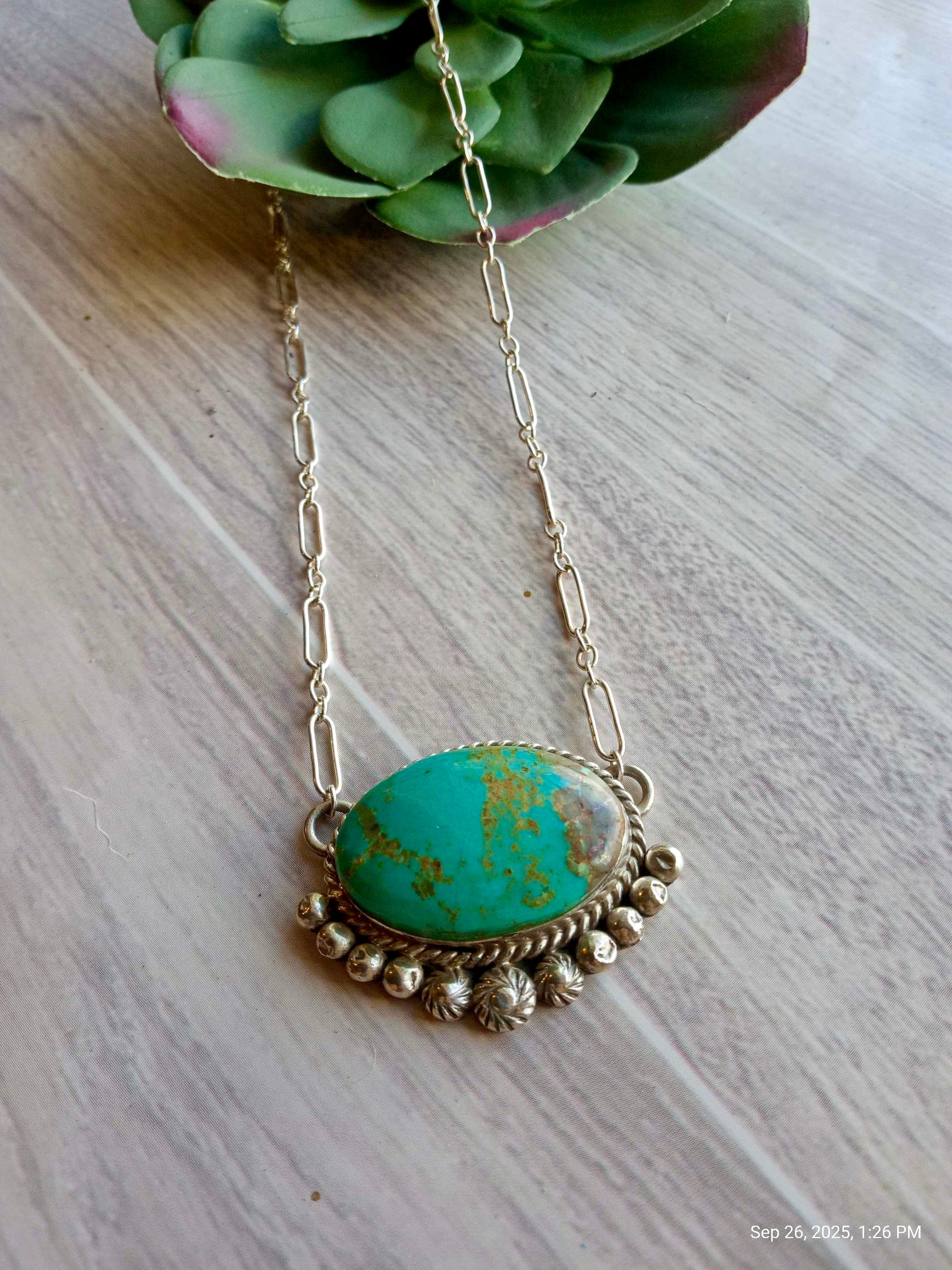 The turquoise is bright, bold, and full of character—with natural variations in color and matrix that make every piece unique.
