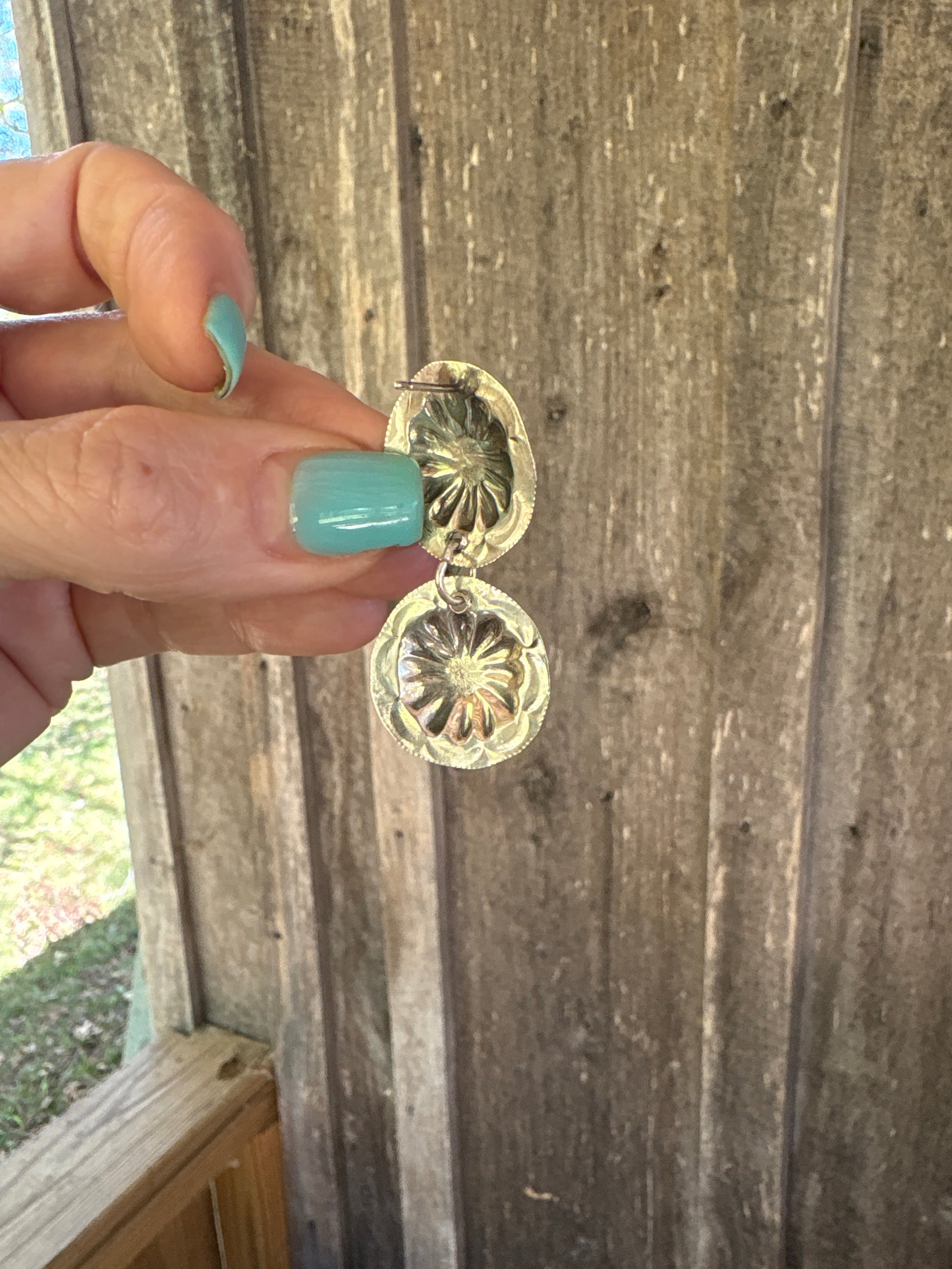 Navajo Concho Sterling Silver Turquoise Dangle Earrings