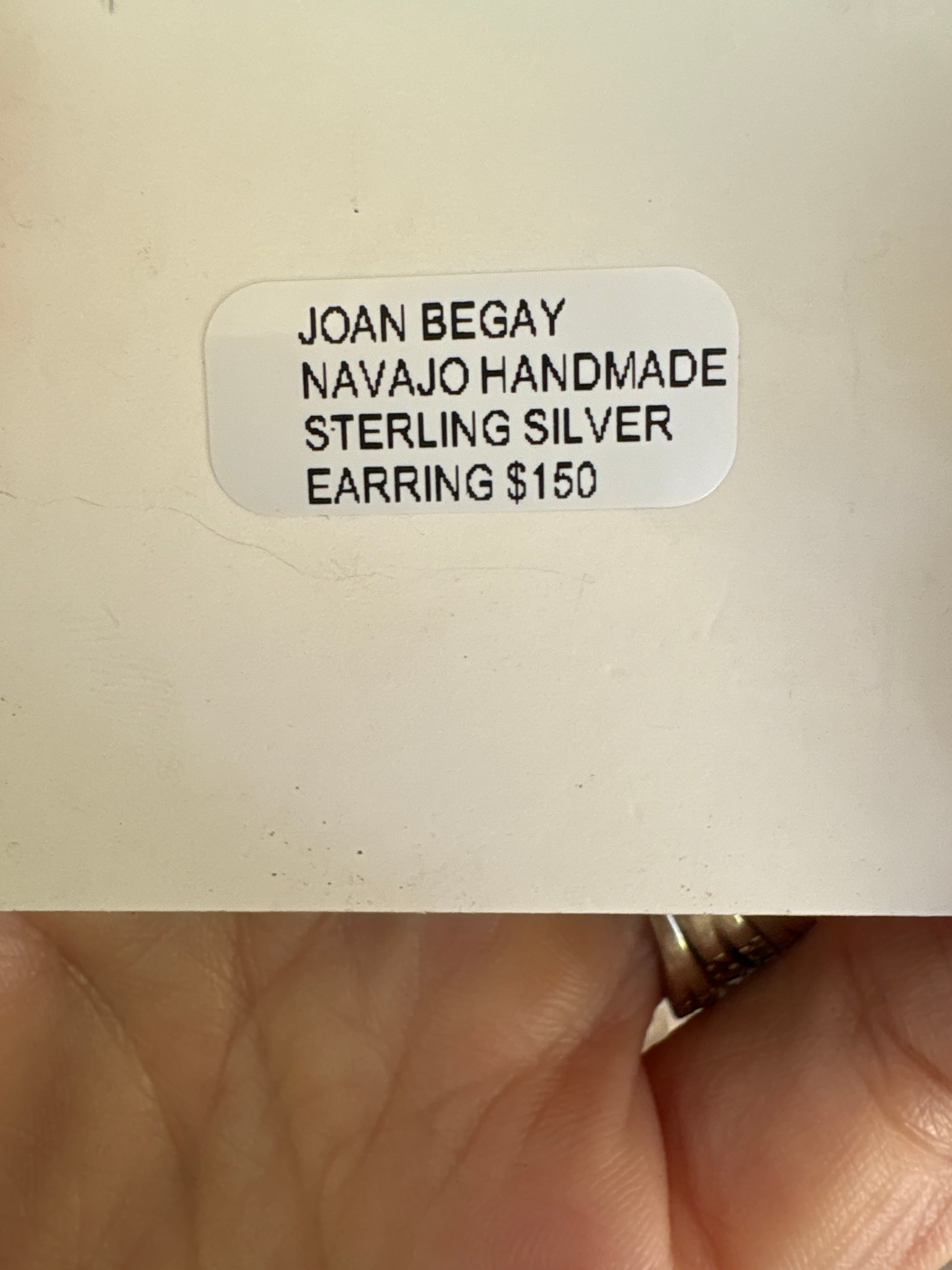 Beautiful sterling silver concho style dangle earrings handcrafted by Navajo artisan Joan Begay. These authentic Native American earrings feature traditional southwestern design with a modern appeal.
