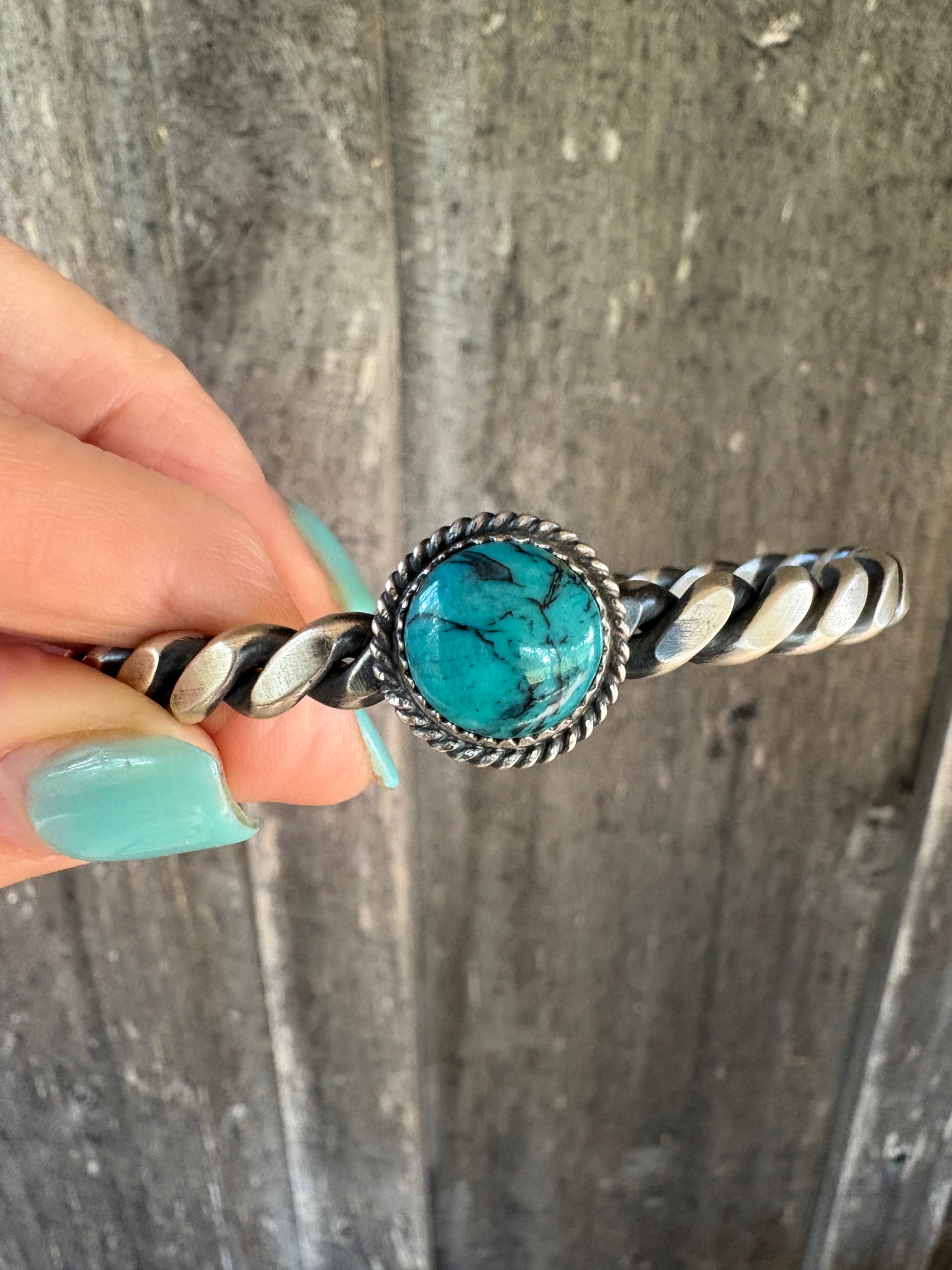 Stunning, heavy gauge Navajo turquoise cuff bracelet.