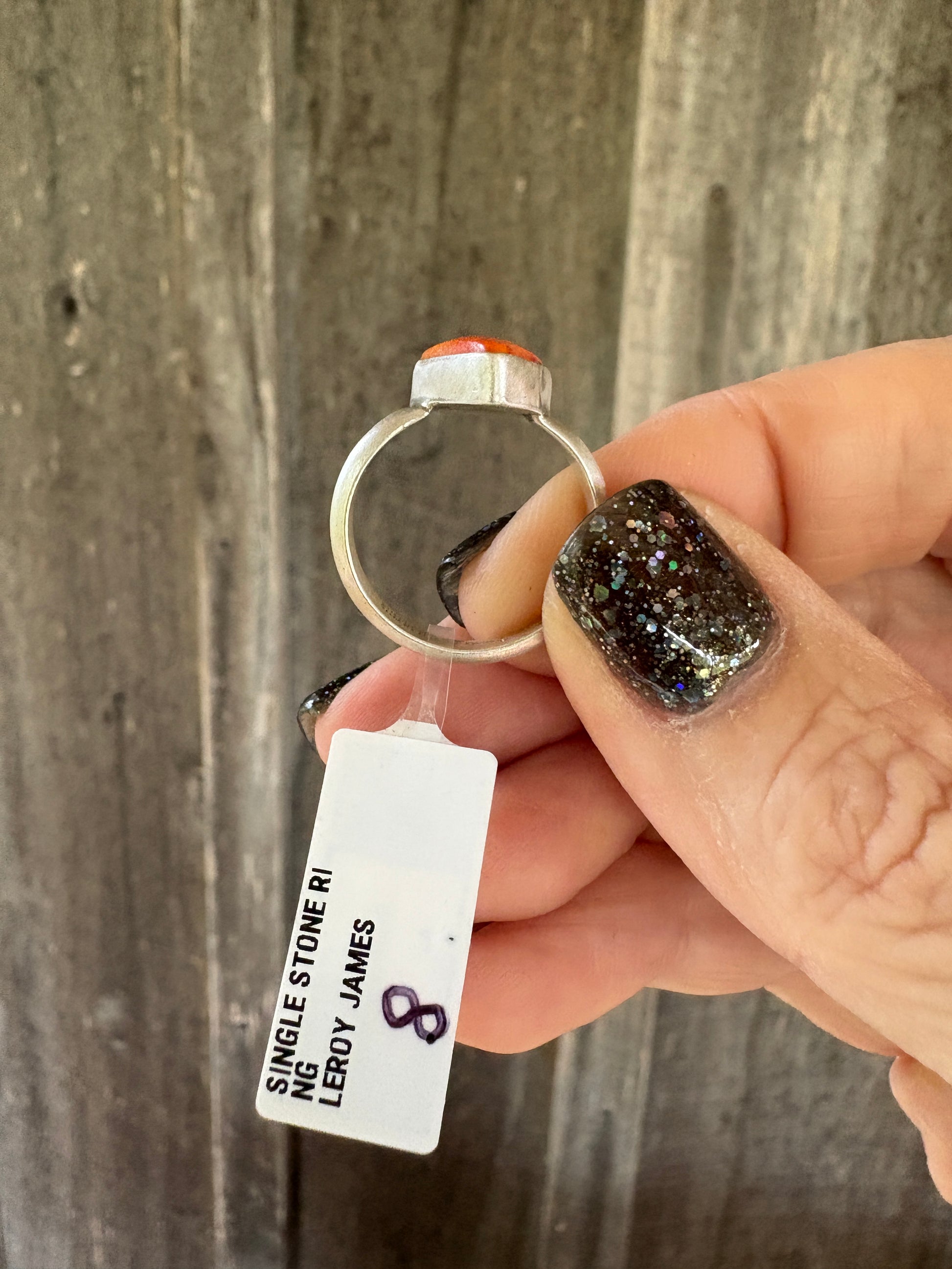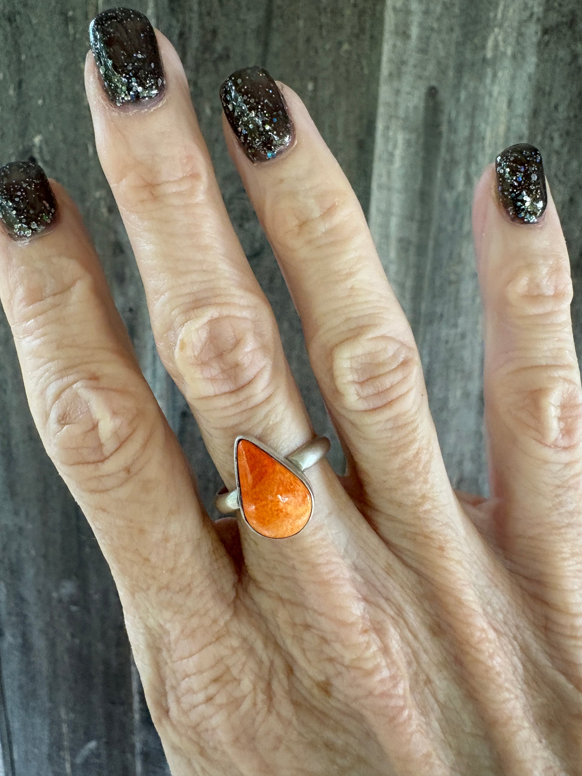 Beautiful orange spiney single stone ring by Leroy James